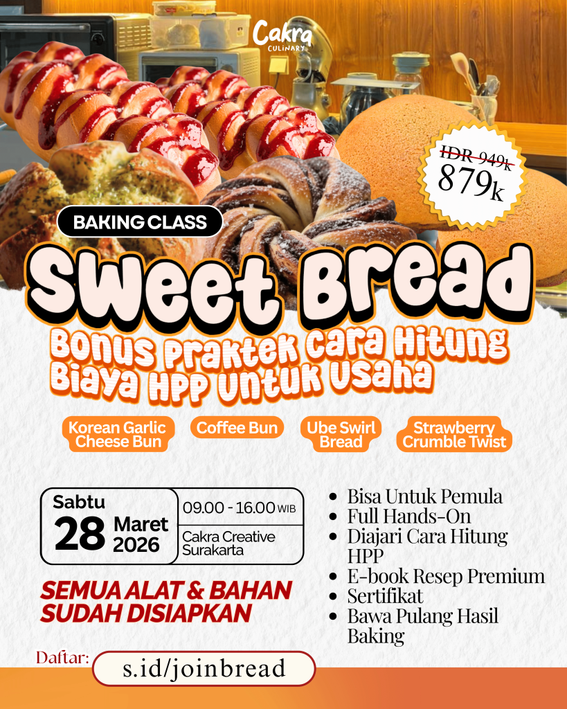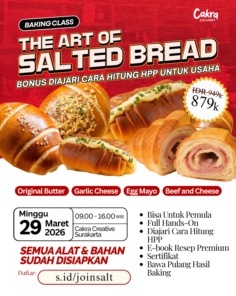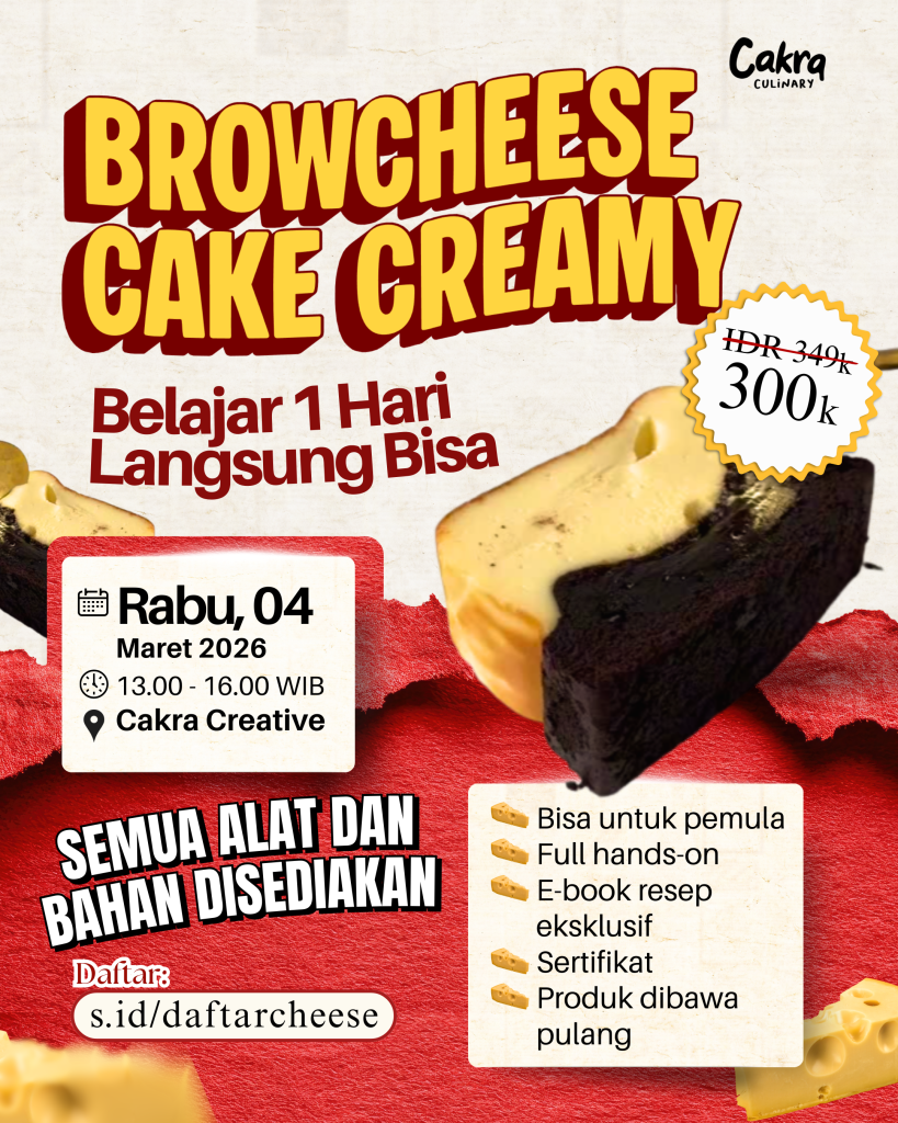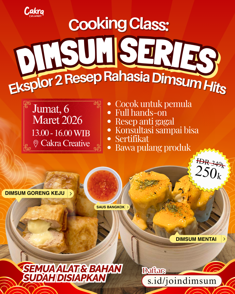Cakra Culinary adalah pusat edukasi kuliner yang menyediakan Cooking Class dan Baking Class dengan sistem pembelajaran intensif dan berbasis praktik, ditujukan bagi pemula hingga tingkat lanjutan.